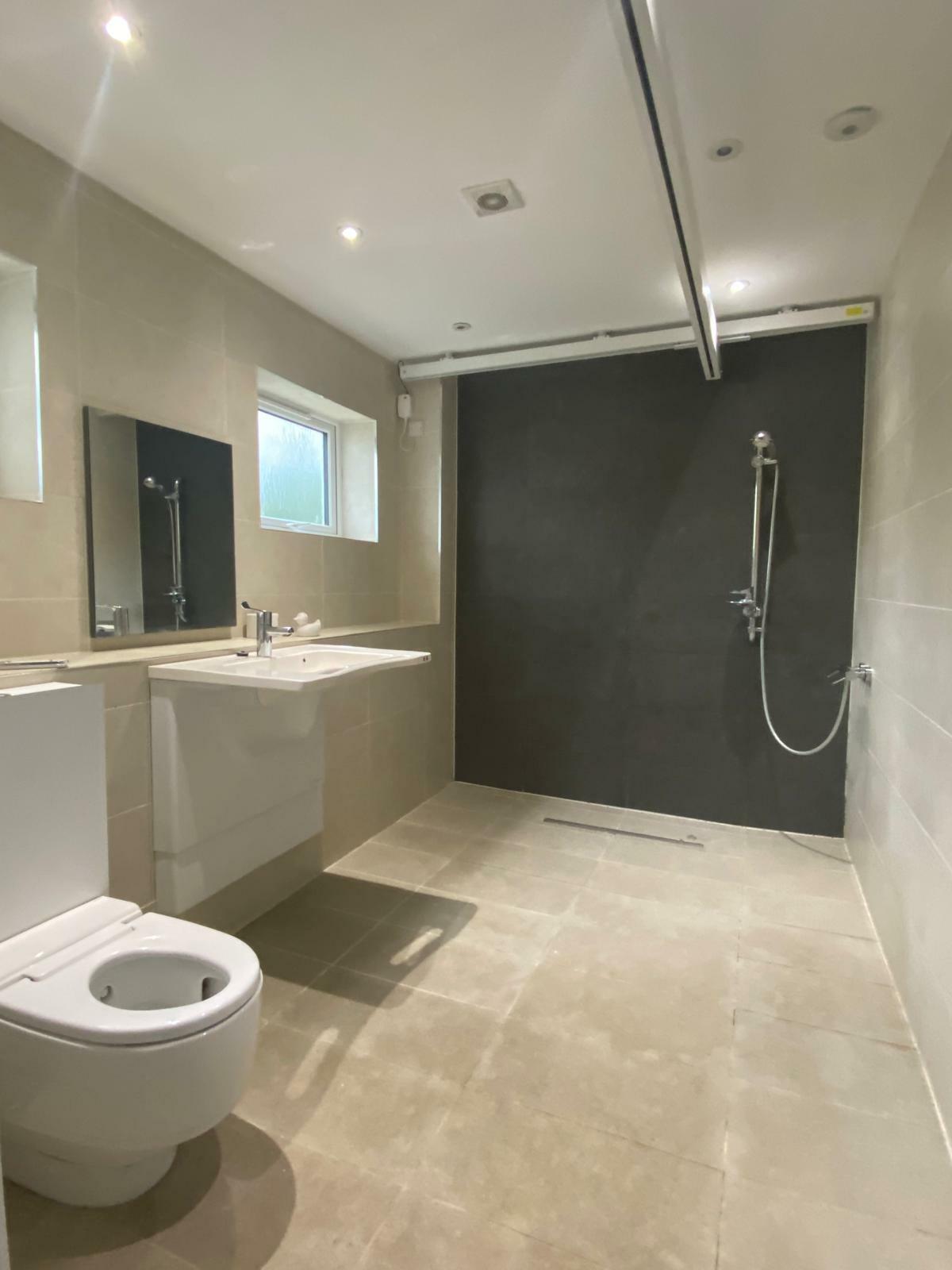 • Two ceiling-track hoists: one linking the accessible bedroom to the wet room, and another in the living room