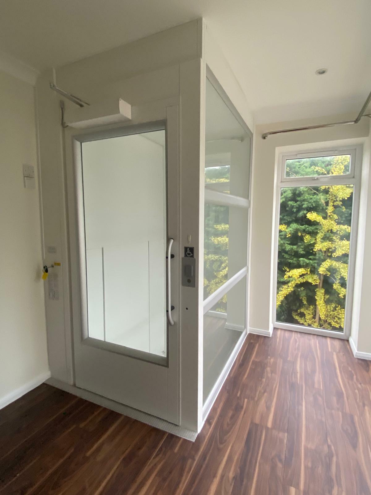 • Through-floor wheelchair lift connecting ground floor, first-floor accessible bedroom, and lower garden level